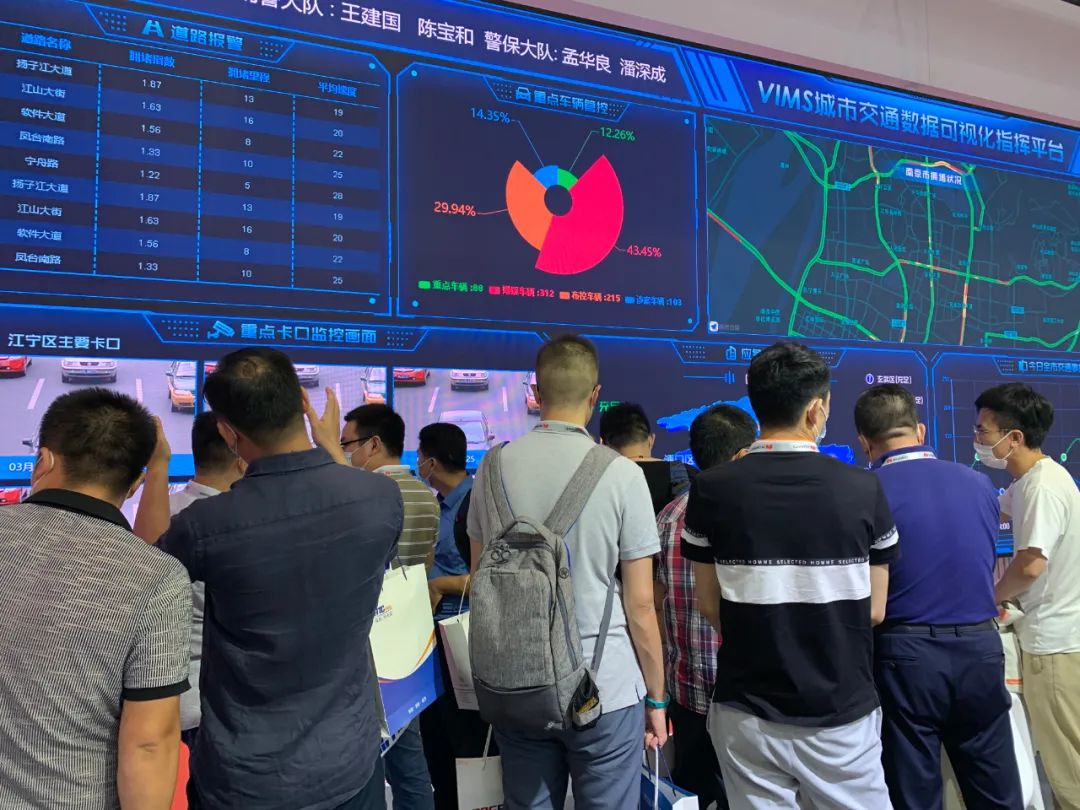 重慶市公安局科信處的領導也蒞臨鉑睿光電展位進行參觀指導,技術人員為他們就不同系列的每塊屏都做了詳盡的介紹。